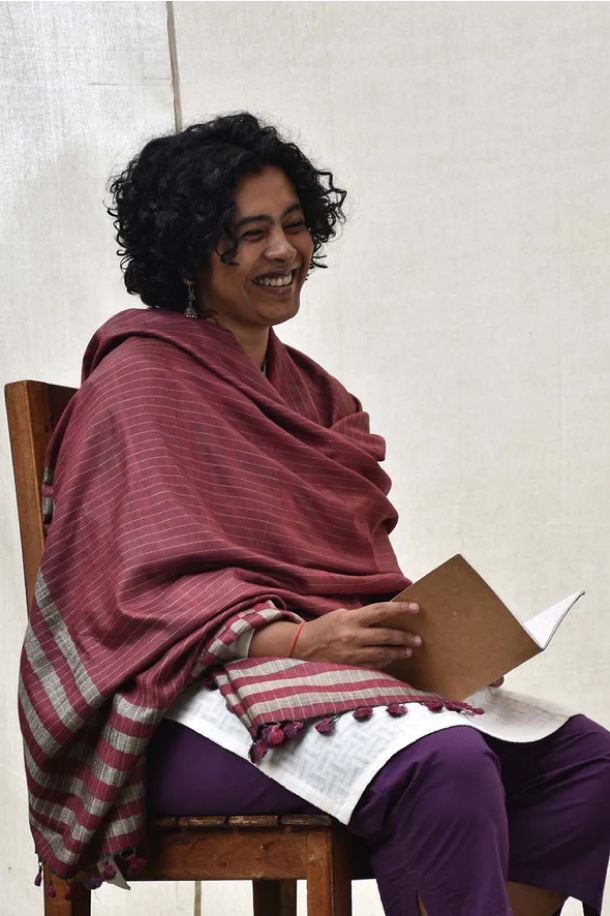 Zig-Zag Twill Eri Silk Scarf | Light Maroon with Stripes Border
